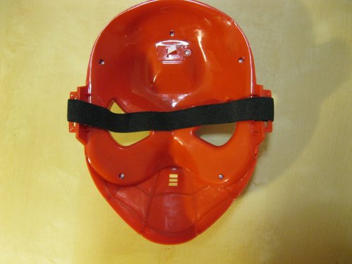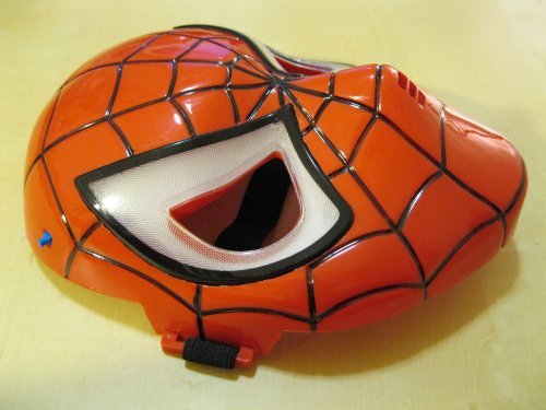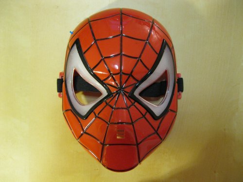 Fine plastic, high quality mask from the movie Spiderman. Mask securely ties on with black ribbons. Fantastic for Halloween. Holes for eyes. Holes for breathing. Blue LED light on eyes could be turned on by taking out the paper chip on the back of the mask and turn the switch to the on mode. Designed for comfortable wearing. Good for child from 4 years to 14 years old.Feature