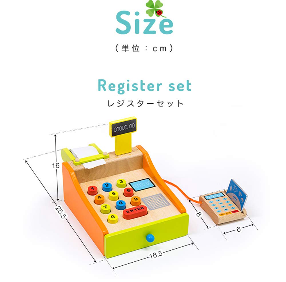【レジスターセット】サイズ (約)幅16.5cm×奥行き25.5cm×高さ16cm※本体のサイズとなります。 重量 (約)690g※総重量になります。 材質 木・プライウッド・紙