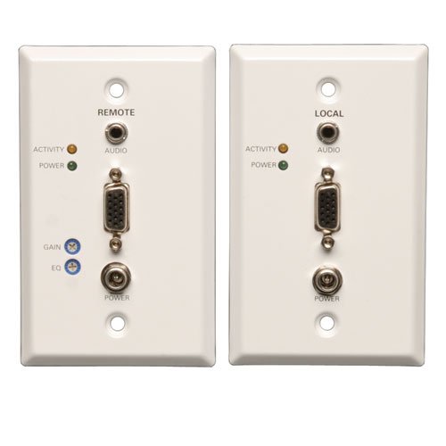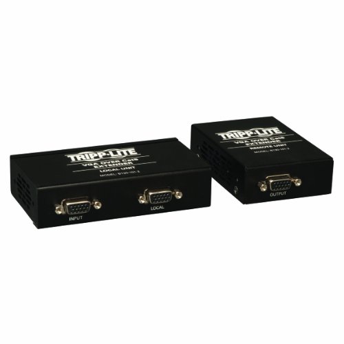 Don’t sacrifice quality for distance—extend a VGA + stereo audio signal up to 1,000 ft. ! The Tripp Lite B130-101A-2 VGA + Audio over Cat5 Extender Kit delivers peak video and audio performance from VGA-enabled digital video components. When used with 24 AWG Solid-Wire Cat5e/6 cabling like Tripp Lite’s N022-01K-GY or N222-01K-GY, it can extend a 1920 x 1440 (60Hz) signal up to 500 ft. or a 1024 x 768 (60Hz) signal up to 1,000 ft. For maximum image quality between 500 and 1,000 ft. , use Zero-Skew cable such as Tripp Lite P524-01K. This kit comes with both the local and remote connection units, allowing you to plug in and get started right away. With no software or drivers to install, the B130-101A-2 provides total plug-and-play convenience. For peace of mind, the B130-101A-2 comes backed by a one-year warranty.