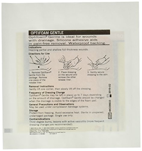 Medline MSC2044EPZ Optifoam Gentle Border Adhesive Dressings, 4 x 4" (Pack of 10)