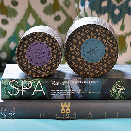 UPCYCLED BOTTLE: Encased in an upcycled vodka bottle with a fine German cotton wick. Enjoy WOO’s exquisite Tranquility and Treasure scents.