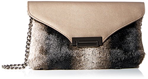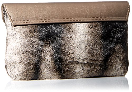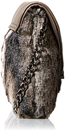 La Regale Faux Fur/PU Flap Clutch, Grey, One Size