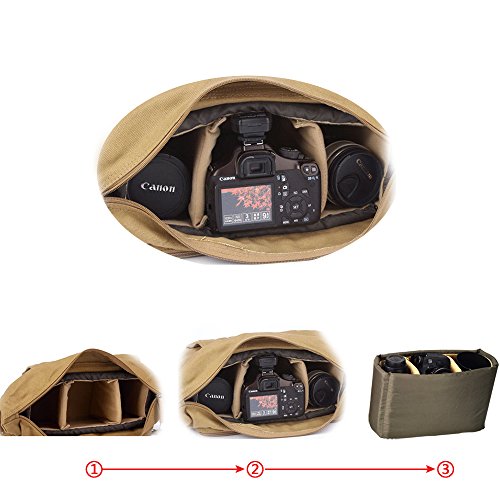 Padded Bottom and Removable Padded Insert to store and protect DSLR camera body, up to three lenses, flash, phone, chargers, tablet, and additional small accessories.