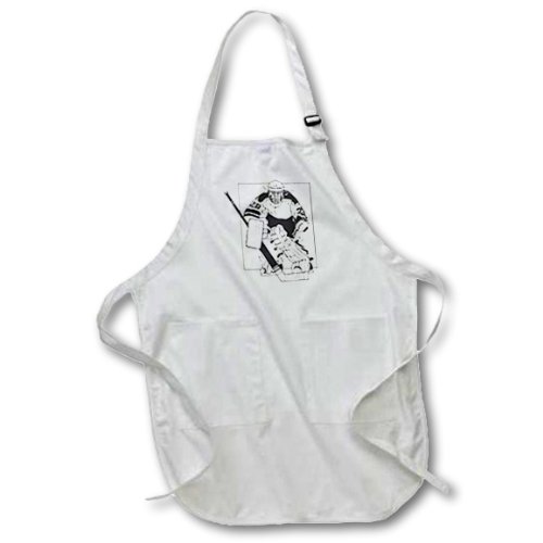 3dRose apr_26014_1 Hockey Player-Full Length Apron with Pockets, 22 by 30-Inch, White
