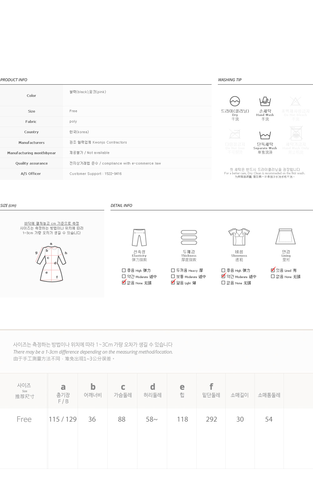 피팅 컬러와 사이즈는 핑크, Free 입니다