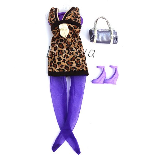 - Title : Leopard Clothes Casual Wears Dress Outfit for Barbie Doll with Bag Shoes Socks