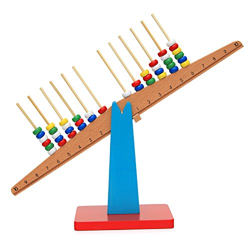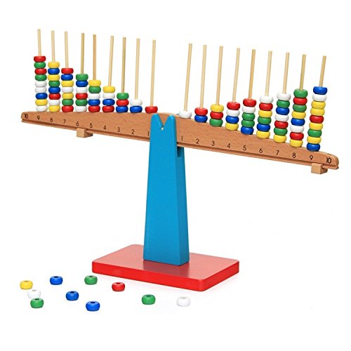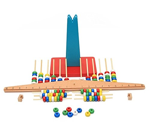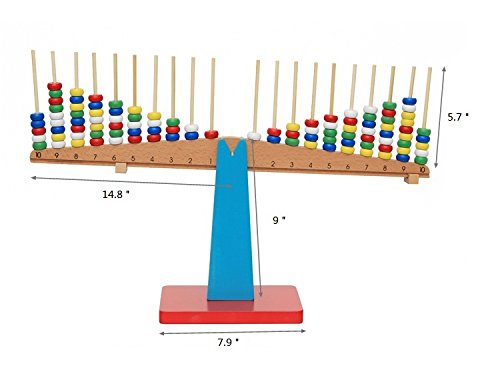 - Feature : Material: Real Wood / Balance, wood stick, Colorful abacus beads / Dimension: balance: 29.5 * 14.8 inch, length of base: 7.9 inch / Perfect for studying number line, addition, subtraction, multiplication, division, equations, gravity, and weight / Let the children understand that an equal number of beads on each side may not be able to balance, also it has a relationship with the distance from the fulcrum.