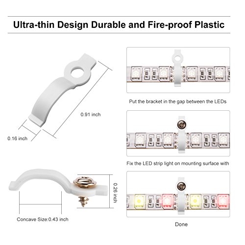 High Quality: Mounting Bracket Fixing Clip is made of durable and fire-proof plastic, safely and securely hold your LED strip light, ultra-thin appearance design, suitable for 5050/5730 LED waterproof strip light with 10mm width