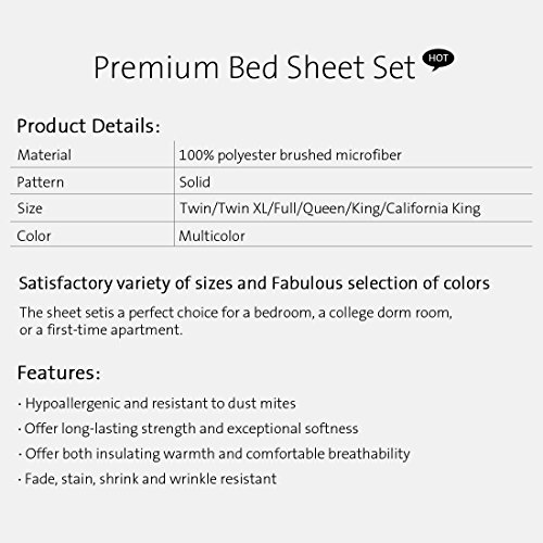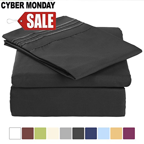Premium Bedding Sheets - Brushed Microfiber Bed Sheet & Pillowcase Set 3/4 Pieces - Wrinkle, Fade Resistant With 18 Inch Extra Deep Pocket (King,Dark Grey)