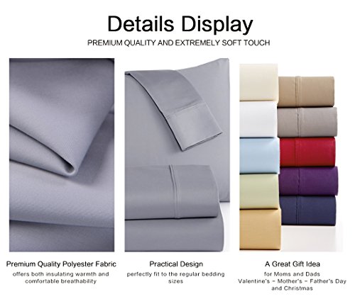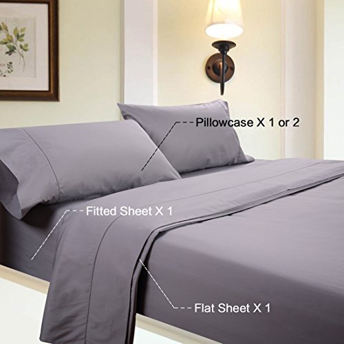 - 1. KING Size 4 Pieces Sheet Set - The Perfect Fit: 1 flat sheet 108 X 102 inches, 1 fitted sheet 78 X 80 X 18 inches, and 2 pillowcases 20 X 36 inches. Deep pocket Fitted sheet has elastic to stretch and fit snugly over mattresses up to 27 inches deep.