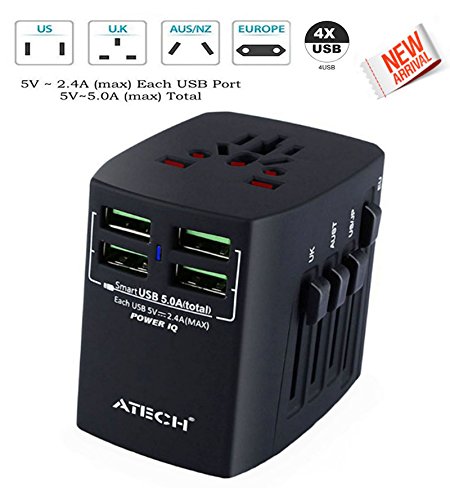 -. Title : Travel Adapter Universal Travel Adapter with 4USB Ports/5A Travel Charger Plug PowerIQ Wall Adaptor All-in-One International Power Converter Worldwide Outlet AC Socket for US/UK/EU/AU by ATECH