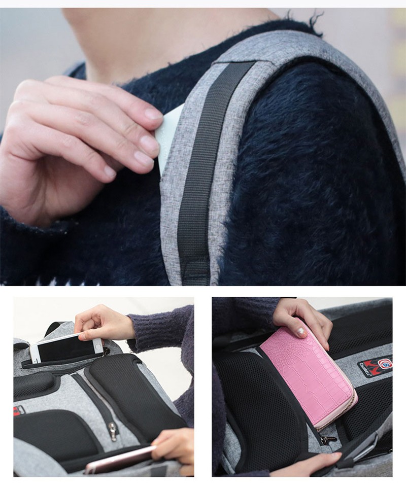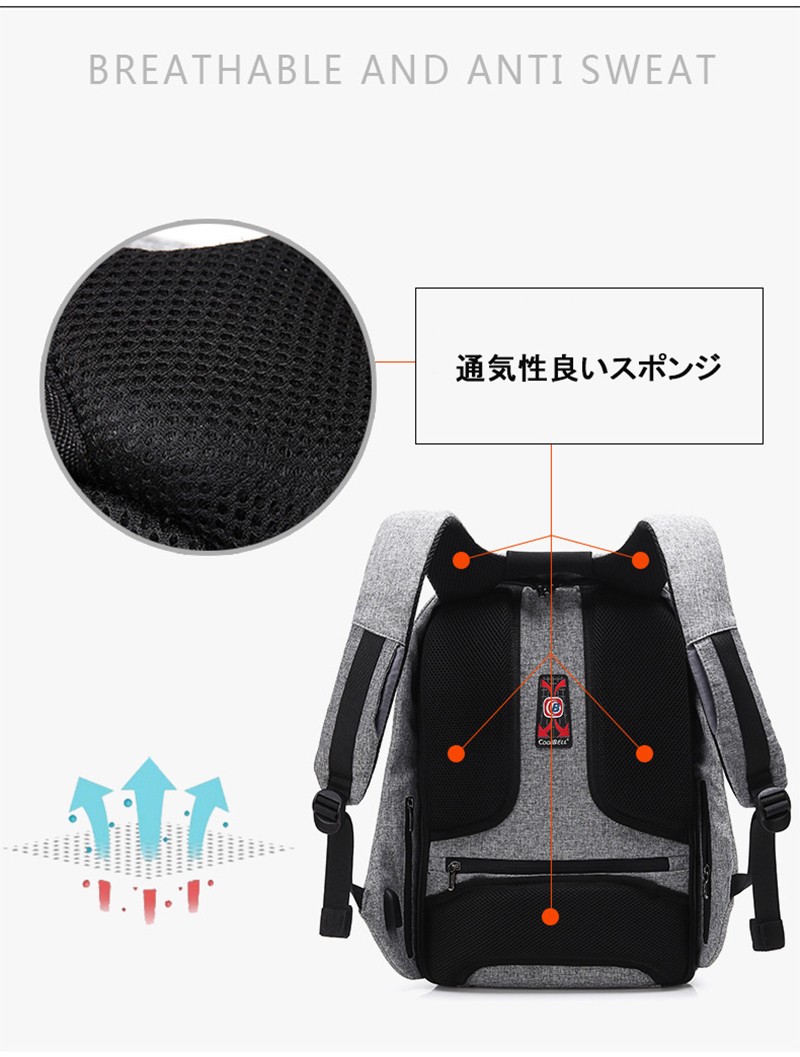 USBポートのデザインで、背負ったまま携帯を充電できます!
