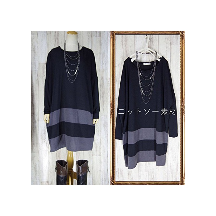 원본상품명: arumix plus ? ボ?ダ? 配色 チュニック ワンピ?ス ニットソ? ドルマン 長袖 ワンピ