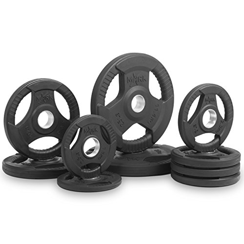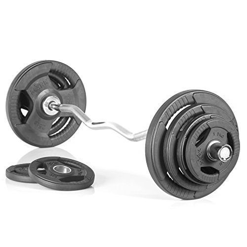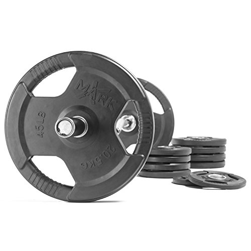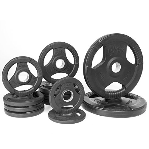 Studio : XMark Fitness Publisher : XMark Fitness Binding : Misc. Product Description XMark Fitness Olympic EZ Curl Bar With Durable Nylon Bushings And Olympic Weight Set Packages With a 400 lb. weight capacity, this XMark Olympic EZ curl bar has chrome sleeves, 28mm grip with medium knurling and longer lasting nylon bushings. Customers describe XMark plate weights as exceptional. The one-piece high quality cast iron plates are hand crafted and inspected. A tough, premium rubber casing made from virgin and recycled rubber covers each plate. The recessed tri-grip handles have spacious openings fitting comfortably in the hand, are rounded with integrated finger slots and slotted for easy loading and offloading. The weight numbers are molded into each plate. The solid steel precision hub ensures a perfect fit on Olympic bars. 0