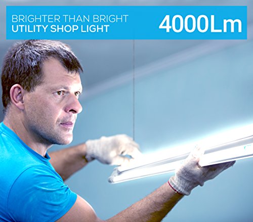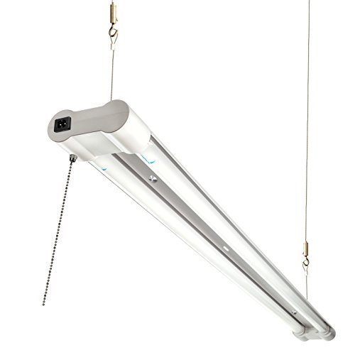 Hyperikon LED Utility Shop Light, 4 Foot Linkable Double-Fixture, 38W (100W Eq) 4000 Lumens, 5000K (Crystal White Glow) DLC 4.1 Qualified, Pull Chain Switch, Workshop Garage Basement