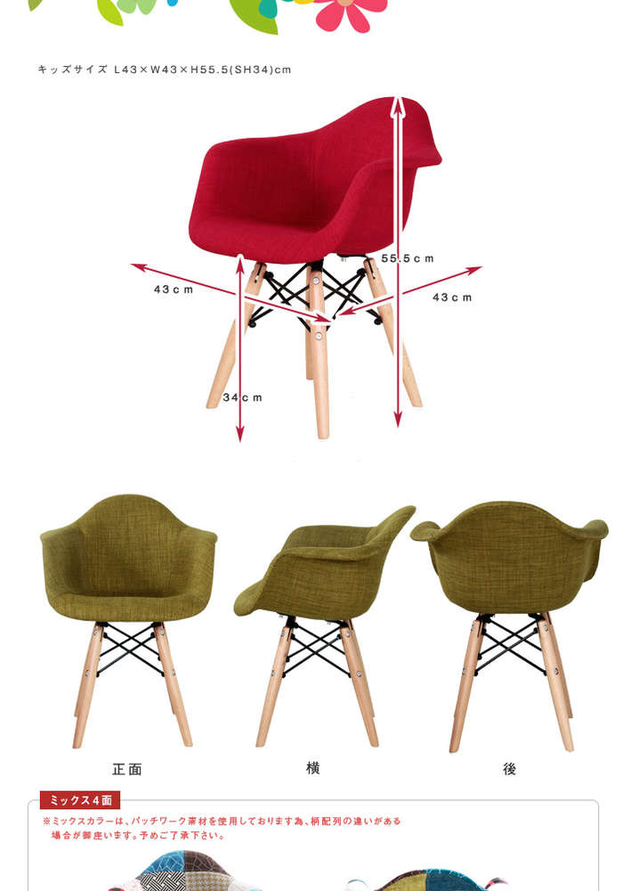 ●キッズサイズ L43×W43×H55.5(SH34)CM