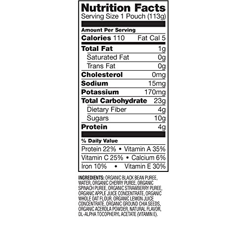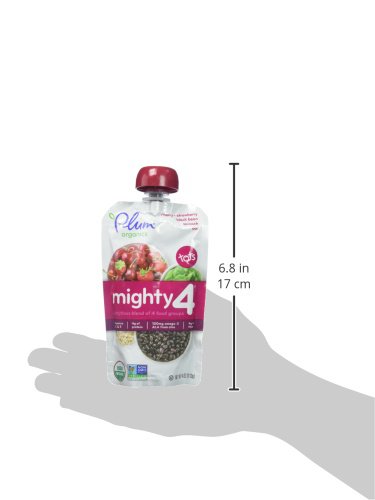 -. Title : Plum Organics Mighty 4, Organic Toddler Food, Cherry Strawberry Black Bean Spinach and Oat, 4.0 ounce pouch (Pack of 6)