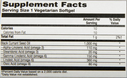-. Feature : 100% pure, omega-3 and 6 black currant oil / 1,000 mg softgels made from plant gelatin / UV-protected bottle