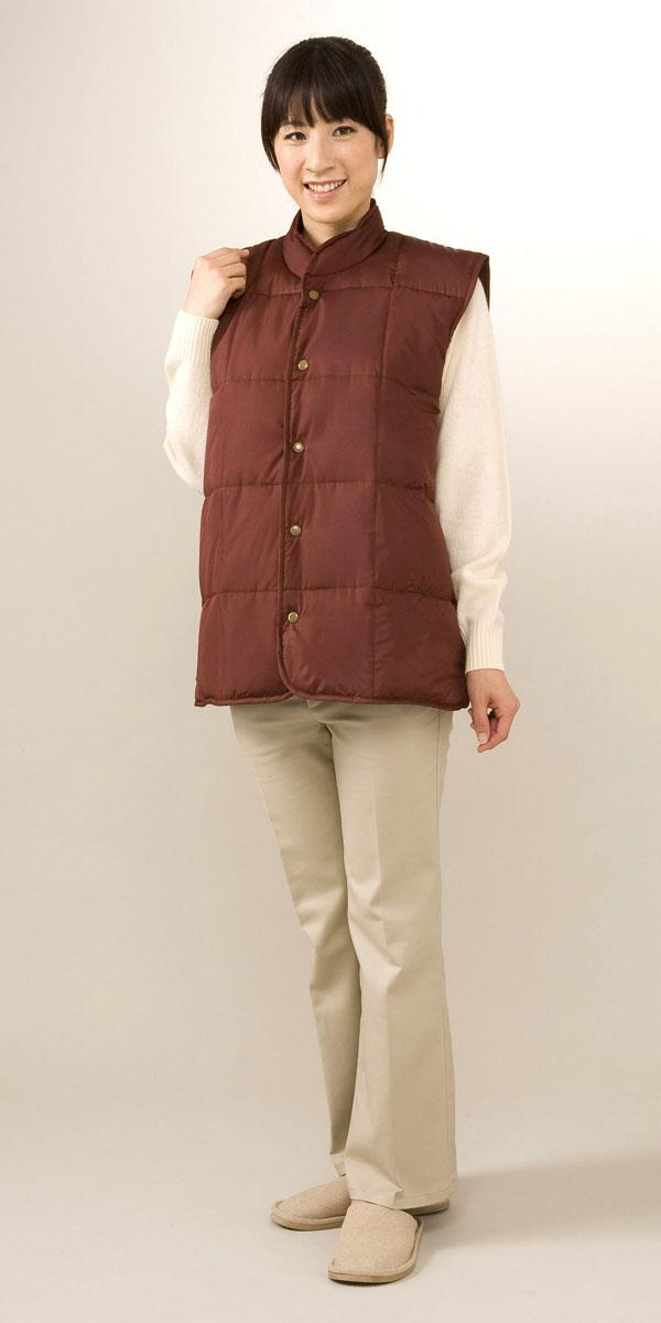 | フェザーとダウン入りなのでとてもあたたかい羽毛ベストです。袖がないので家事などの作業もしやすいです。 |
