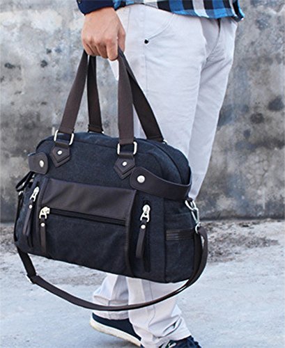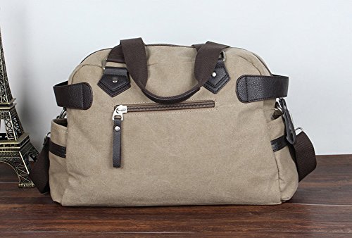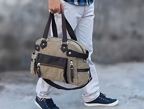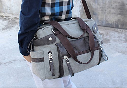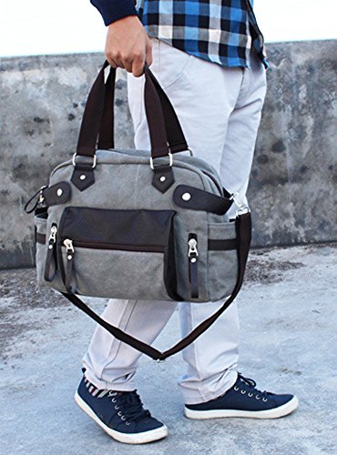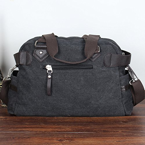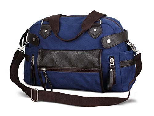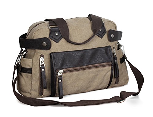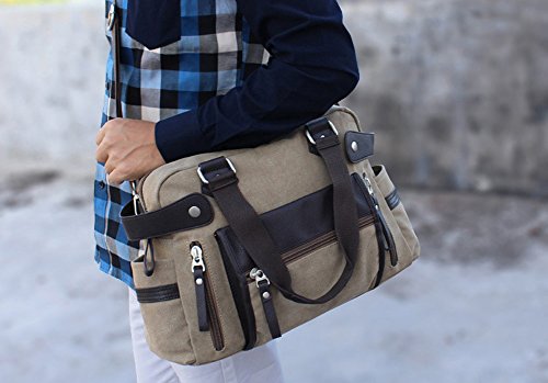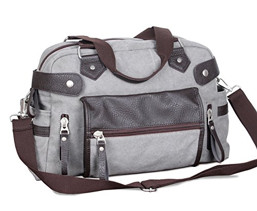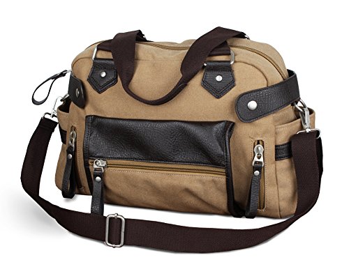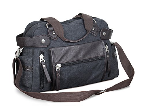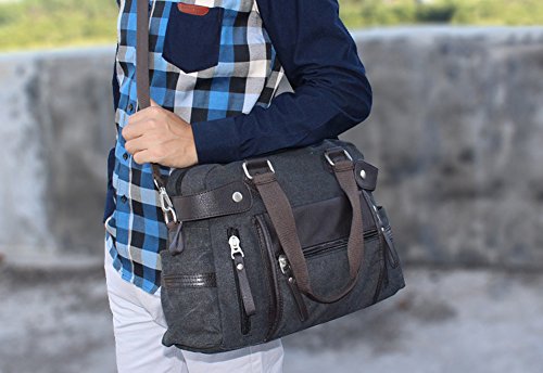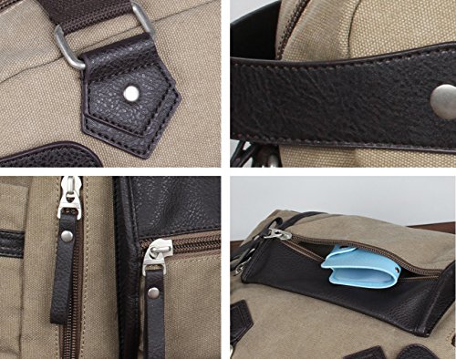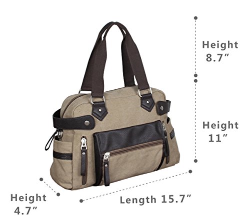 Product Description Info: - Material: Canvas and leather (exterior) Polyester cotton (interior) - Size: 15.7 (L) × 11 (H) × 4.7 (W) inch - Net Weight: 1.9 pounds - Hardware: Silver-tone zipper hook and loop (stainless steel) - Strap: Canvas adjustable detachable strap.