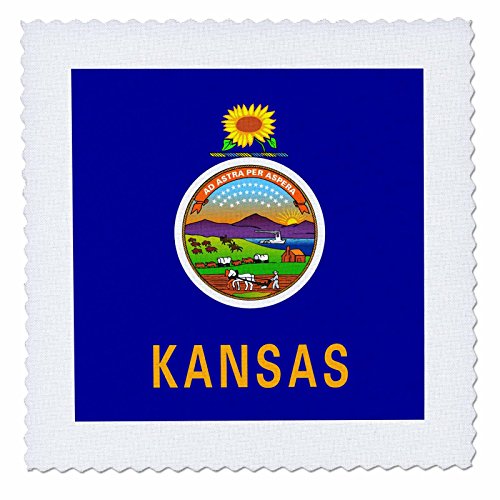 3dRose qs_158346_5 Flag of Kansas US American State United States of America USA Dark Blue Seal Sunflower Quilt Square, 14 by 14-Inch