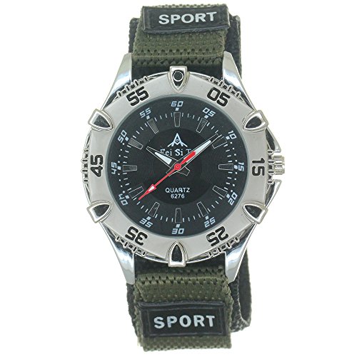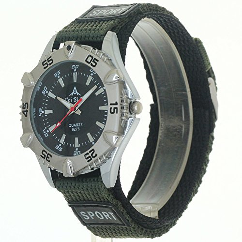 -. Title : Nylon Ribbon Band Military Army Velcro Fastener Polished Buckle Sport Quartz Unisex Bezel Wristwatch