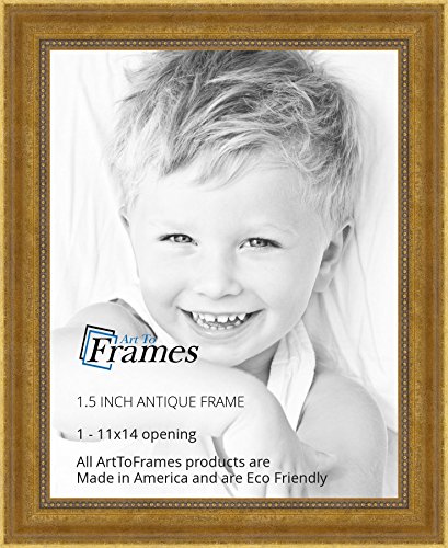 ArtToFrames 11x14 inch Antique Gold with Beaded Detailing Wood Picture Frame, WOMD5042-11x14
