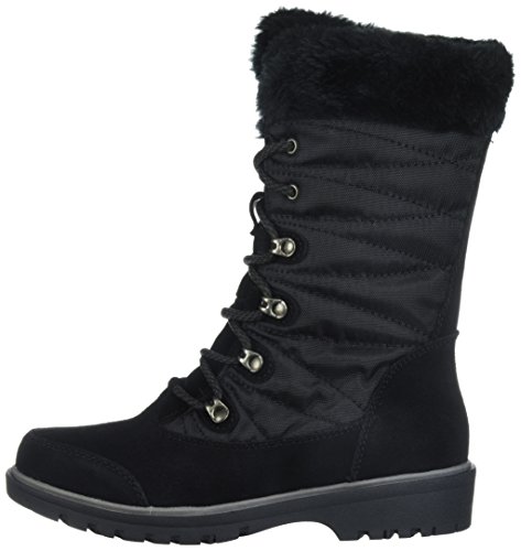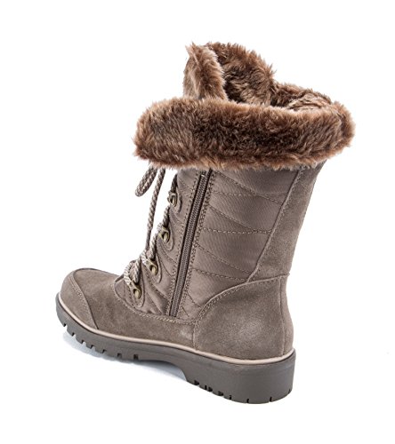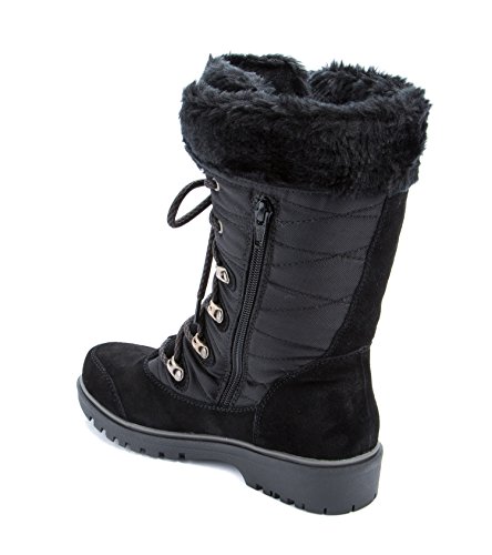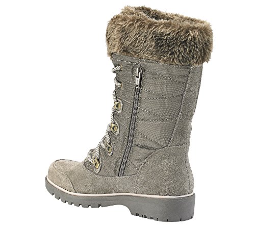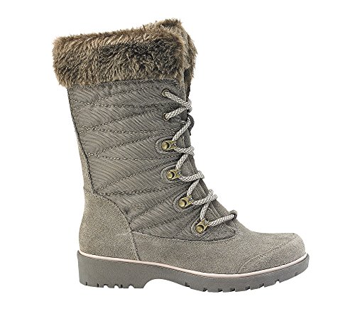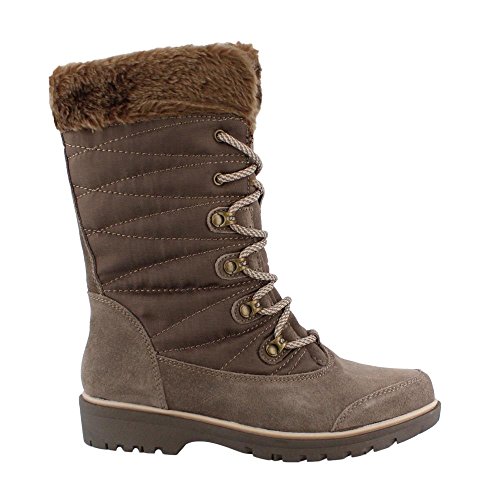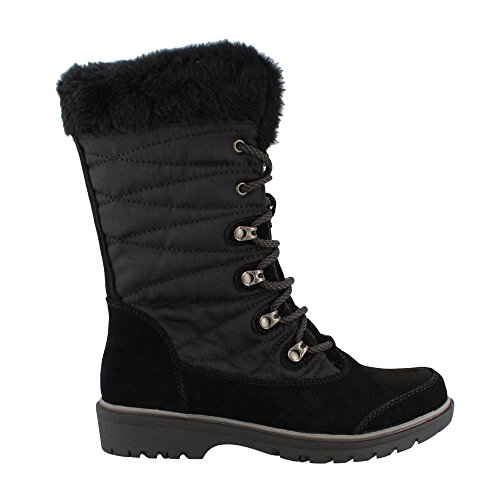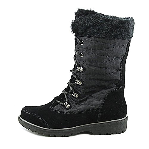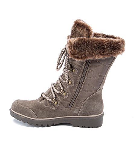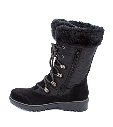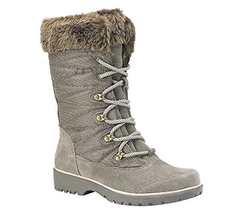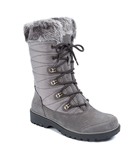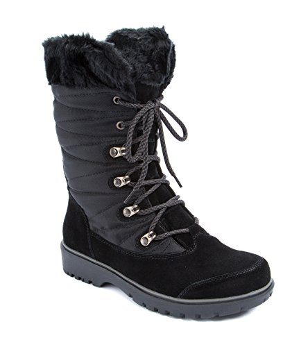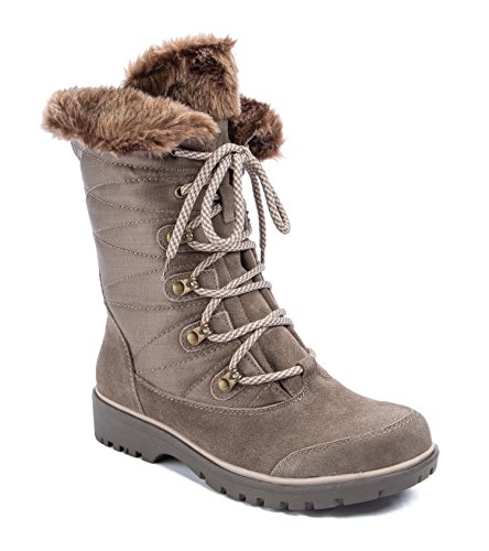Product DescriptionThe BareTraps satin is a water resistant suede leather cold weather boot.? it features warm shearling fabric linings for softness and comfort, combined with a lace up detail and inner zipper for easy adjustments.0