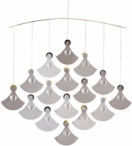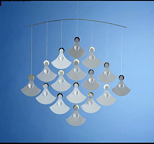 - The angels' graphical appearance is elegant and classical, due to their color and form. Their hearts also serve as wings. Year after year, you will enjoy hanging up this graceful choir of angels. Careful lighting can create fascinating shadows on you walls behind the mobile. Don't forget to open the hearts; this will create wings on the back of the angels, and the play of the light and shade will add an extra dimension to your mobile. Also available with 9 angels (FM-85a) or 25 angels (FM-85c).