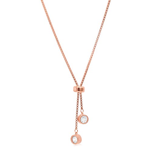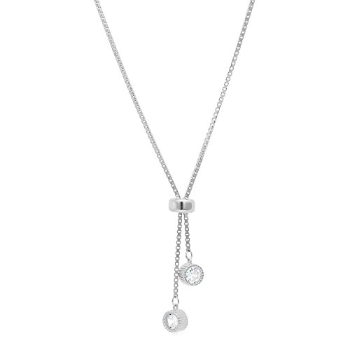 This Necklace is stylish and unique. The necklace is very practical in that it could be expanded to be worn comfortably at different styles; loose or snug and symmetrically or asymmetrically. The box chain necklace is plated with platinum to withstand tarnishing and a sliding stopper bead secures the desired length in place. The ends are burnished with high quality sparkly cubic zirconia stones for extra luster.Feature