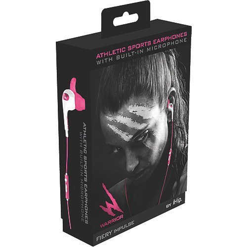 -. Title : Warrior by iHip - Pink Fiery Impulse Sport Buds W/Mic & Vol Cntrl, 1 headphones
