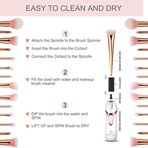 - 100% Guarantee or your money back. Our electrical makeup brush cleaner removes harmful bacteria nesting in your cosmetic brushes in no time. These 3 easy steps can easily clean your makeup brush in less than 10 seconds. All you need to do is fill the water 1/3 in the bowl and put cleaning solution. Dip the brush, spin and dry. Makeup Brush is ready to be used right after unlike the tradition way where you have to wait 24 hours for the brush to dry.