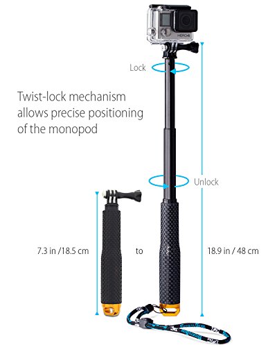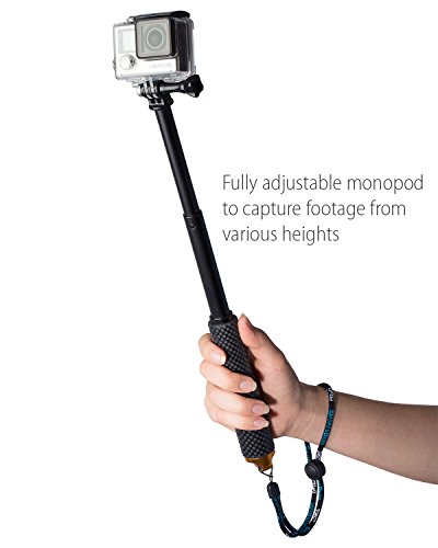 Fosmon Extendable Monopod, Adjustable Selfie stick for GoPro Original HD HERO 1 /2 / 3 / 3+ / 4 Black & Silver / 5 Session