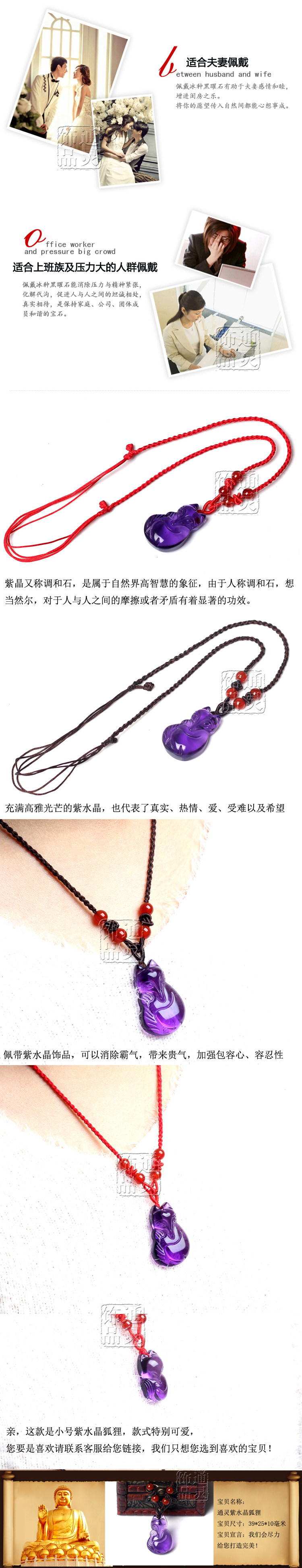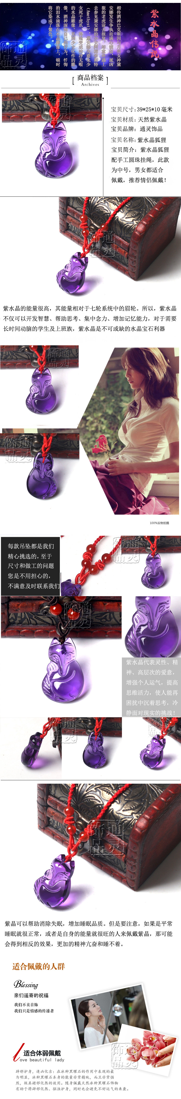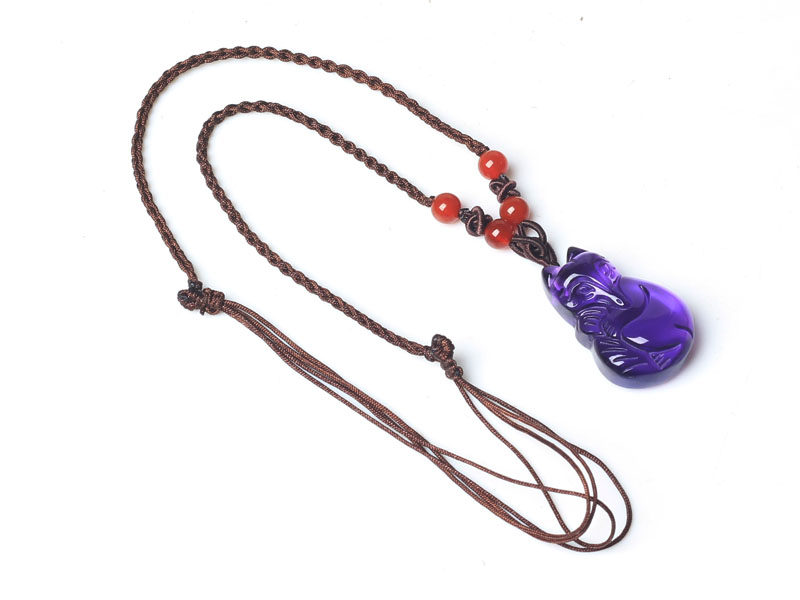 开光天然紫水晶狐狸吊坠 本命年招财旺桃花促姻缘 男女款紫晶项链