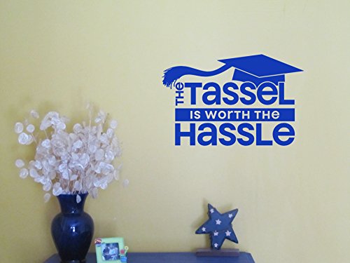 Wall Decor Plus More WDPM3453 The Tassel is Worth the Hassle Vinyl Sticker Party Decal Graduation Quote, 23 x 15", Traffic Blue