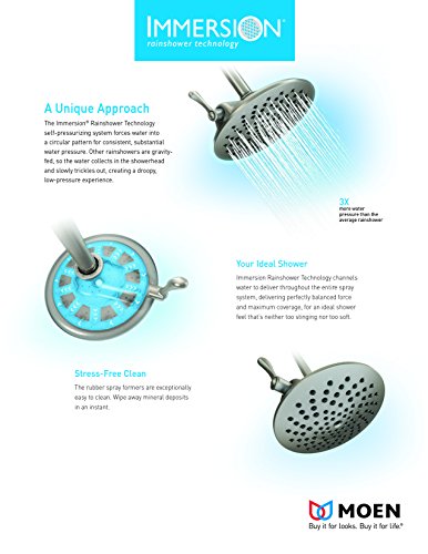 Moen S6365BN Voss 6" Eco-Performance Single-Function Rainshower Showerhead with Immersion Technology at 2.0 GPM Flow Rate, Brushed Nickel