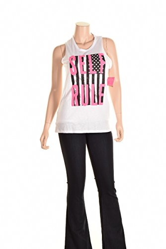 RACHEL RACHEL ROY WOMENS SELF RULE TWIST-BACK GRAPHIC TANK TOP WHITE XS