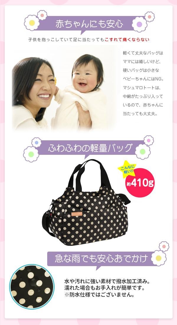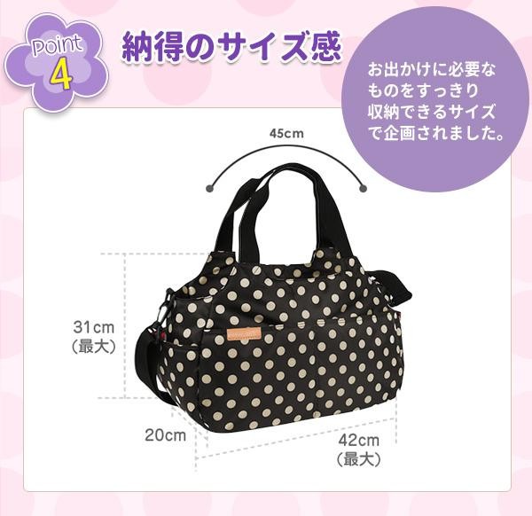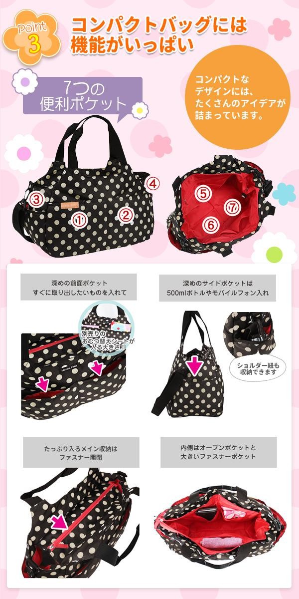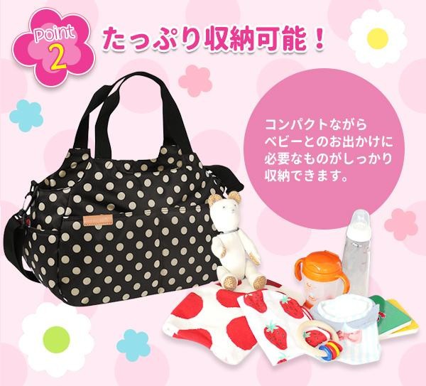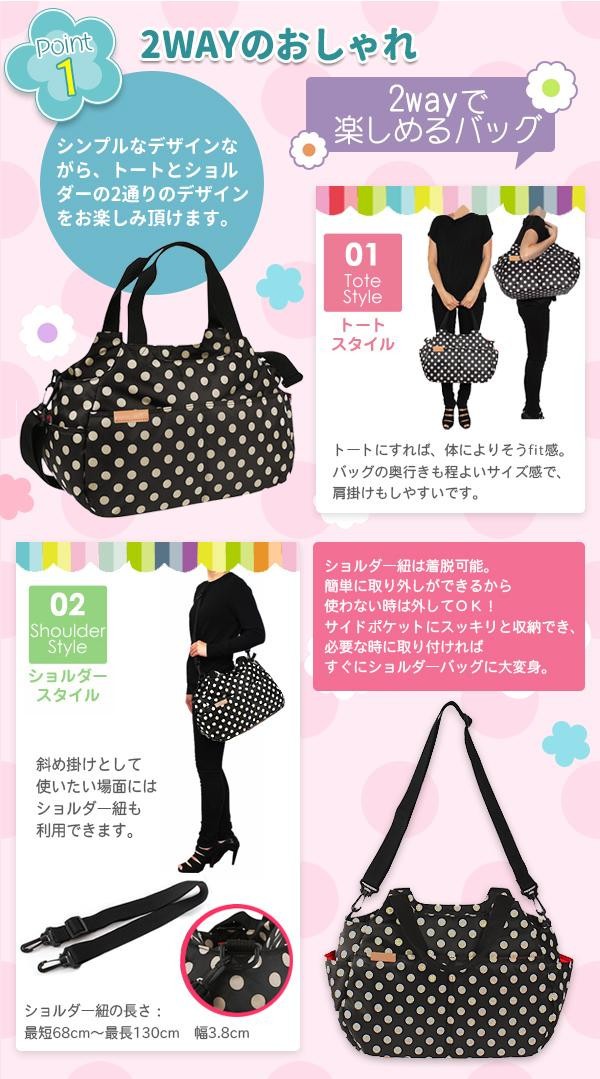| おしゃれで可愛いドット柄の大容量マザーズバッグ |