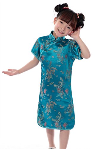 -. Title : (上海物語)Shanghai Story 龍柄 花柄 女の子 女児 半袖 ワンピース チャイナドレス 子供ドレス 子供服 中華服 レッド チャイナ服