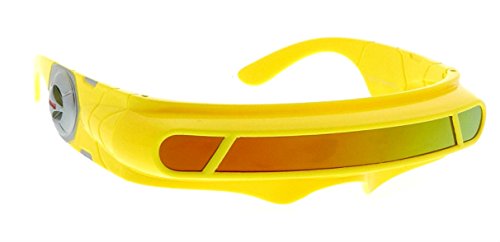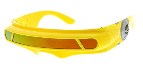 Product Description Super fun glasses for parties, costumes, cosplay and more. Not recommended as an everyday pair of sunglasses. You don't want that much attention. A Great Accessory to finish a Futuristic Costume. Try being a Space Alien, "Robo Cop", Robot and more! (No affiliation to any movies) Revo Reflective lenses create a very unique look when light hits them. Multicolor frames to get the right look. Made with a plastic based frame, metal hinges, and reflective 100% UV protected lenses. 0