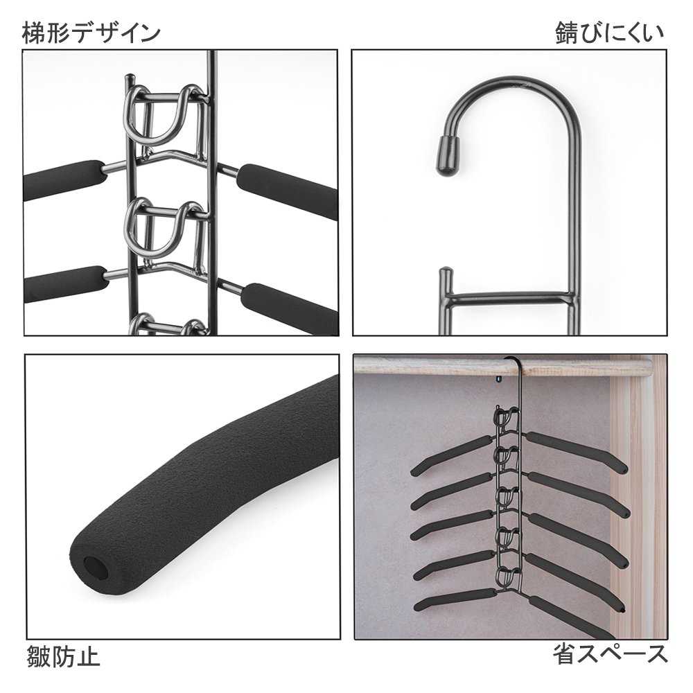 【優れた耐久性】スリム設計で収納性に優れている5本セットのハンガー、頑丈なスチール素材でできているので、錆びることや変形することせず、一度買えば一生使い続けることができて経済的です。