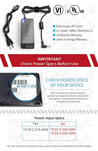 POWER SPECS : Input Volt Range: 100-240V / Output Max: 19.5V 2.31A 45W