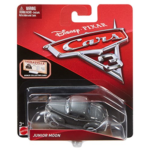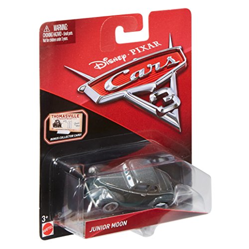 -. Binding : Toy -. Brand : Disney -. Color : Multicolor -. EAN : 0887961554571 -. Feature : New 1:55 scale character vehicles from Disney/Pixar Cars 3! / Authentic true to movie decos and details that highlight each personality / Wide variety to create or enhance your collection. Each die-cast sold separately, subject to availability / Recreate Cars action and laughs with die-casts in other assortments from all three movies! Each vehicle sold separately, subject to availability / Collect them all! -. IsAdultProduct : 0 -. Label : Mattel -. Manufacturer : Mattel -. Model : FLB60 -. MPN : FLB60 -. NumberOfItems : 1 -. PackageQuantity : 1 -. PartNumber : FLB60 -. ProductGroup : Toy -. ProductTypeName : TOYS_AND_GAMES -. Publisher : Mattel -. ReleaseDate : 2018-10-01 -. Studio : Mattel -. Title : Disney Cars Junior Moon Vehicle, Multicolor -. UPC : 887961554571 -. Warranty : 1 Year Warranty Against Manufacturer Defects