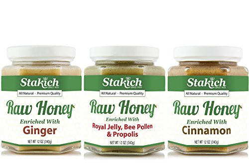 -. Title : GIFT PACK - Stakich Royal Jelly Bee Pollen Propolis RAW HONEY 12-OZ, Cinnamon RAW HONEY 12-OZ, Ginger RAW HONEY, 12-OZ - Pure, Unprocessed, Unheated, KOSHER -