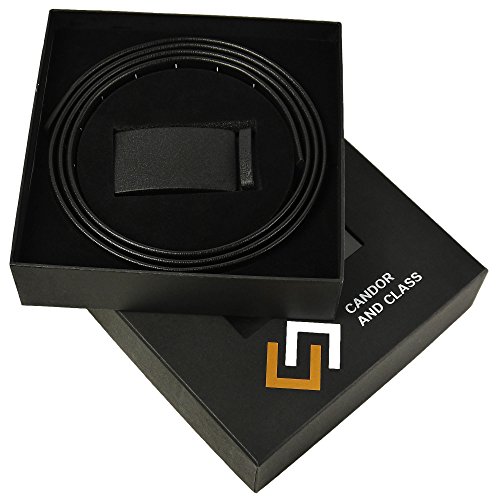 -. Feature : Premium Real Leather: Why settle for inferior leathers? Your Candor and Class men's ratchet belt comes in genuine cow split-hide leather, known for its luxurious look and feel, durability, style and elegance that will last a lifetime. / Ease of Use: To USE - Slip the tapered end, of the no holes strap, into the belt buckle and listen for the comforting confirmation clicks as you tighten to ensure a perfect fit everytime. To REMOVE - Tighten the belt ever so slightly (as counter intuitive as it may seem), to release some pressure and tension off the locking mechanism, press the release lever resulting in an easy belt removal. (Instruction manual included) / Perfect Sizing: With 30 settings spaced at .25 inch apart, our real leather ratchet belt provides a CUSTOM TAILORED FIT for all full and in-between sizes. The genuine leather strap is 1.37 inches wide (35 mm) and an industry first, 60 inches long with more than enough product to accommodate a 57 inch waist, comfortably. / Elegant Gift Box: The luxurious Candor and Class men's ratchet dress belt is artfully packaged in a hard gift box that is perfect for wrapping and giving as a gift / Money-Back Guarantee: Not satisfied with your premium, affordable men's ratchet belt? Return it within 45 days for a full refund or free exchange. (They're also backed by our 180-day warranty.)