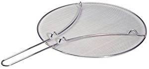 Splatter Screen with Double Thick Mesh for Covering Pots and Frying Pans during Cooking. Food Grade Stainless Steel with Finest Woven Mesh and Resting Feet. Safe and Clean Cooking.