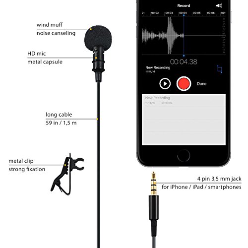 Clip-on Omnidirectional Condenser Microphone for Apple Iphone, Ipad, Ipod Touch, Samsung Android and Windows Smartphone