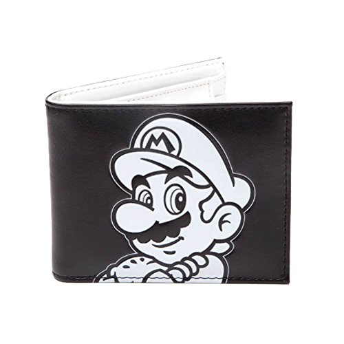 Studio : Super Mario Publisher : Super Mario Product Description Bringing a bit of retro charm to the bouncing plumber, this black-and-white Mario wallet is a fantastic accessory for any Nintendo maniac. Perfect for containing your hard-earned box-breaking cash, this characterful leather-effect wallet is suitable for daily use for kids or brave office workers. 0