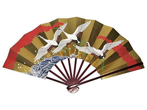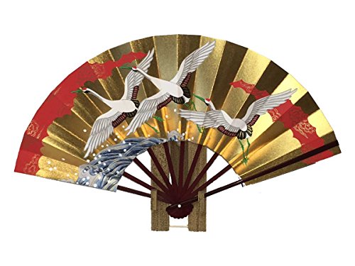 Japanese Washi Paper Sanbazuru Sensu(22cm Folding Fan) with original box and stand