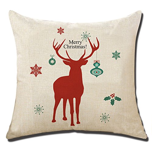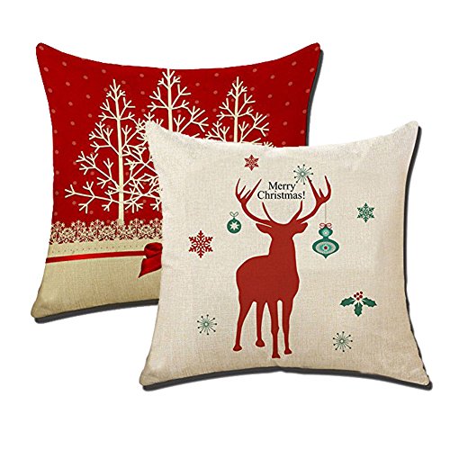 2 Packs Christmas Pillow Case Cotton Linen Square Throw Flax Pillow Case Cushion Covers Comfortable For Sofa Home Car Decorative Xmas Gifts (Red,white)